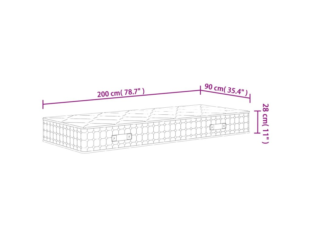- Rozměry: 90 x 200 x 28 cm (Š x D x T)