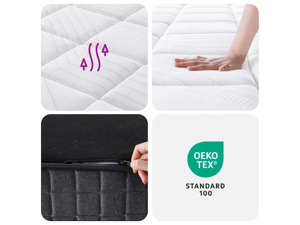 - Individuální opora: Každá spirálová pružina s látkovým povlakem reaguje na tlakové body, poskytuje cílenou oporu a rovnoměrně rozkládá tlak na páteř.