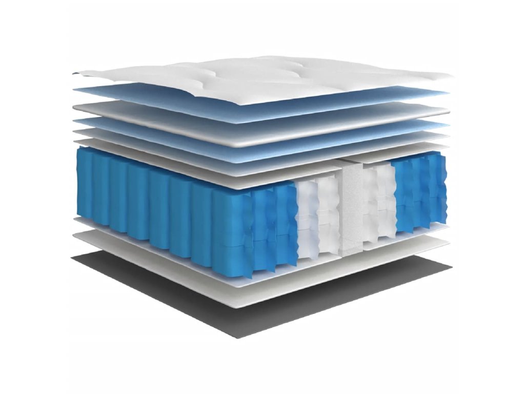 - Zvýšený komfort: Pružinová matrace má více vrstev, včetně pěnové, izolační a pružinové vrstvy. Tato kombinace zajišťuje mírnou až střední tvrdost a komfort pro všechny polohy při spánku. Matrace navíc účinně tlumí hluk a vibrace způsobené převalováním a otáčením, čímž zajišťuje klidný a nerušený spánek.