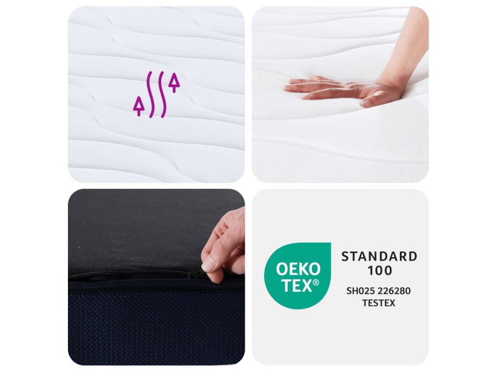 - Snadná údržba: Matrace z pružinové pěny je vybavena dlouhým zipem, který umožňuje snadné sejmutí potahu pro vyprání.