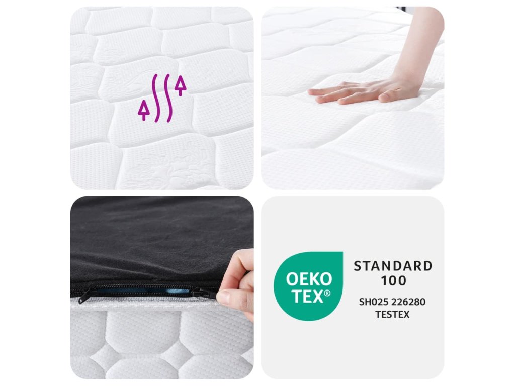 - Individuální opora: Každá spirálová pružina s látkovým povlakem reaguje na tlakové body, poskytuje cílenou oporu a rovnoměrně rozkládá tlak na páteř.