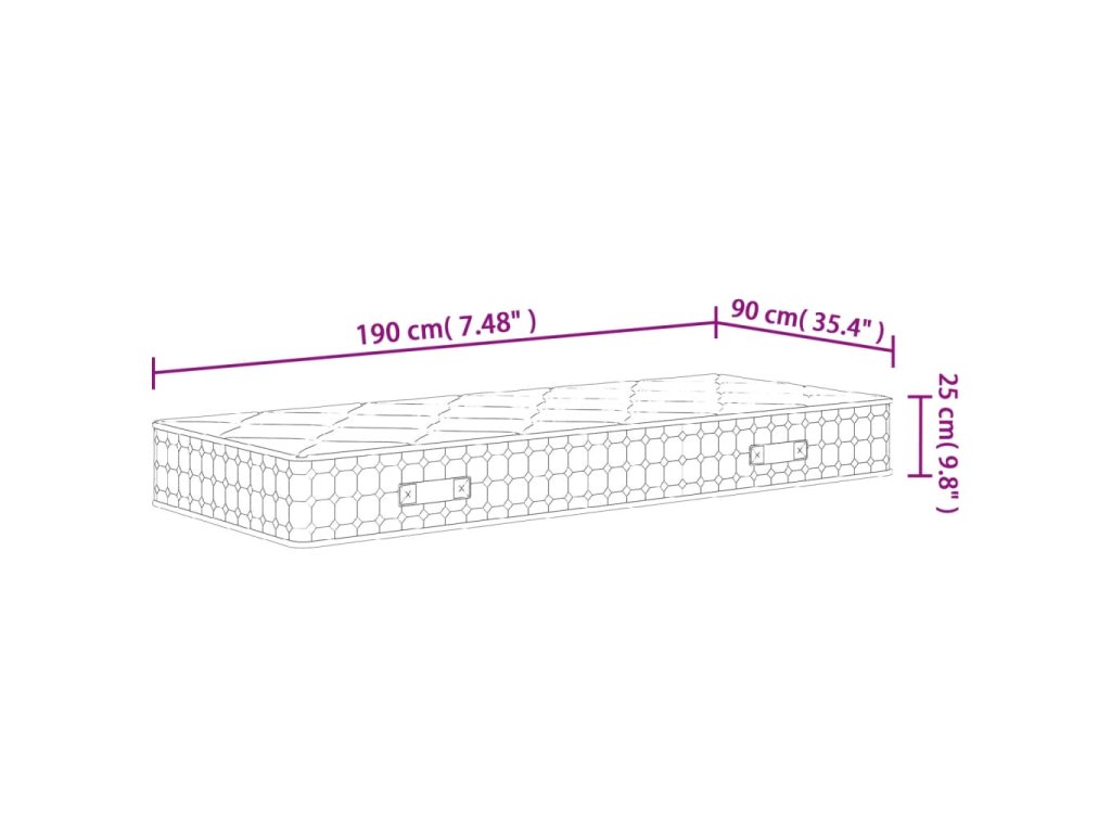 - Rozměry: 90 x 190 x 25 cm (Š x D x T)