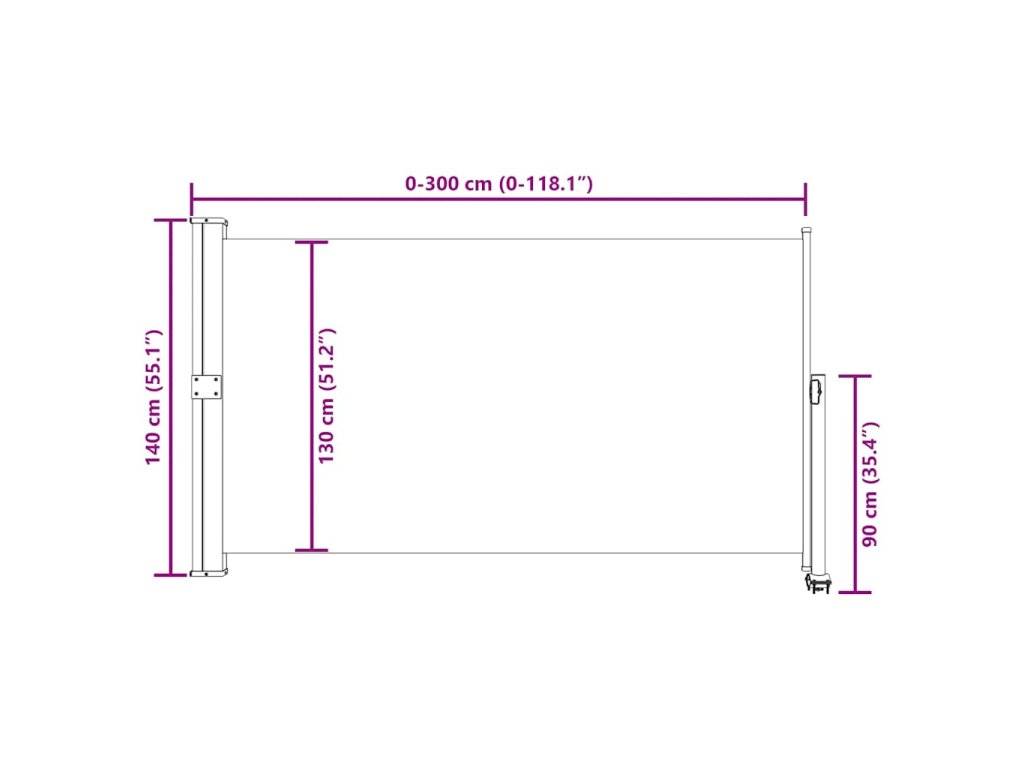 - Rozměry: 140 x 0–300 cm (V x Š)