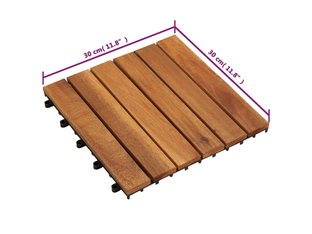 Podlahové dlaždice jsou vyrobené z kvalitního akáciového dřeva, což je tropické tvrdé dřevo, které je samozřejmně odolné proti vlivům počasí a má dlouhou životnost. Díky zacvakávacím spojením do sebe dlaždice jednoduše a těsně zapadnou a vytvoří tak stabilní povrch.