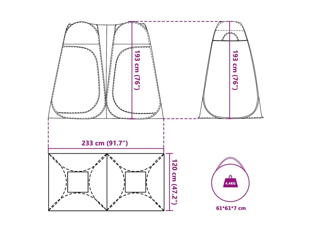 - Pop-up a skládací konstrukce: Díky pop-up konstrukci můžete stan snadno postavit a složit během několika sekund. Altán je skládací, takže se snadno skladuje a přepravuje.