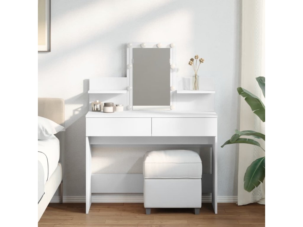 - LED světlo: Kosmetický stolek má LED žárovky s USB, u kterých lze snadno přepínat režimy z teplé do studené bílé. Integrované LED žárovky kolem zrcadla zvýrazní i vaši krásu.