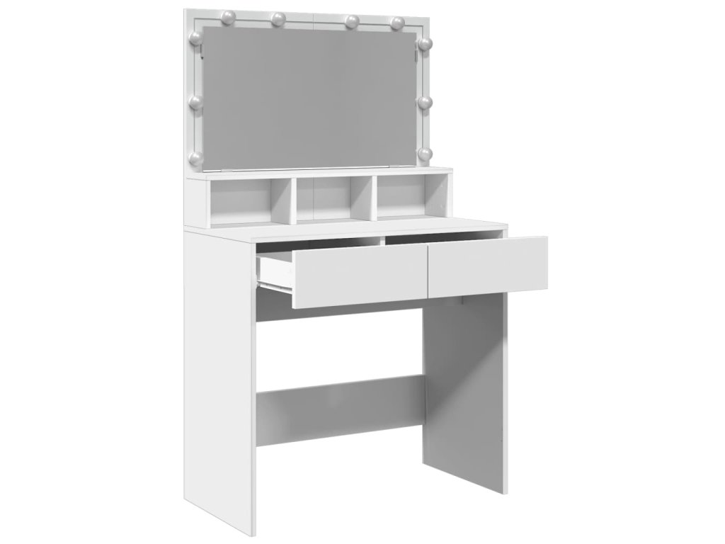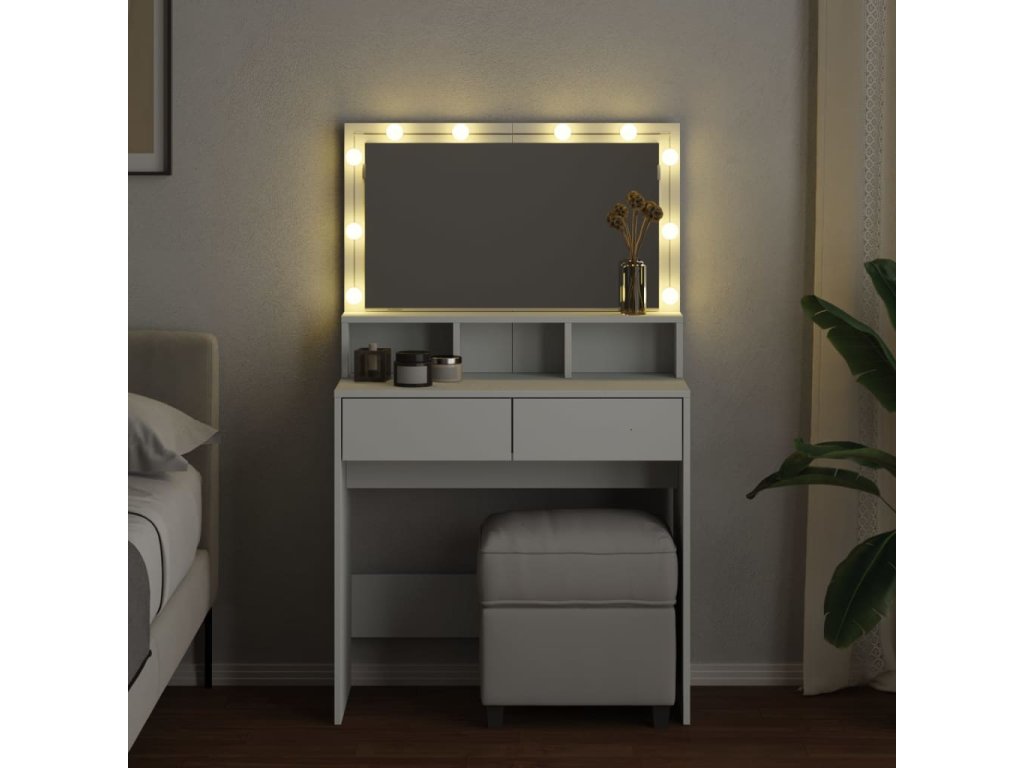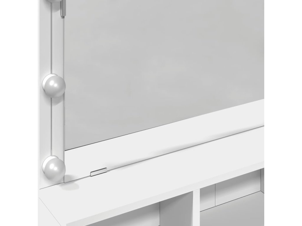 - LED světlo: Kosmetický stolek má LED žárovky s USB, u kterých lze snadno přepínat režimy z teplé do studené bílé. Integrované LED žárovky kolem zrcadla zvýrazní i vaši krásu.