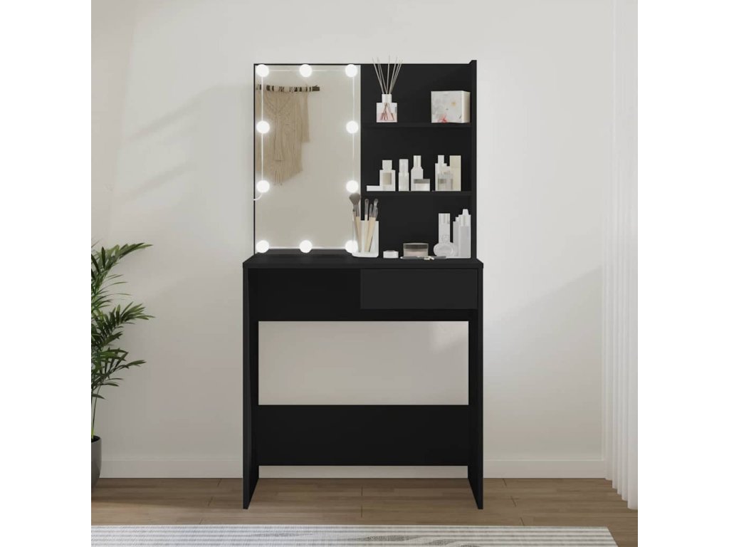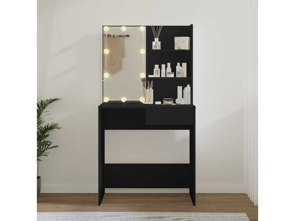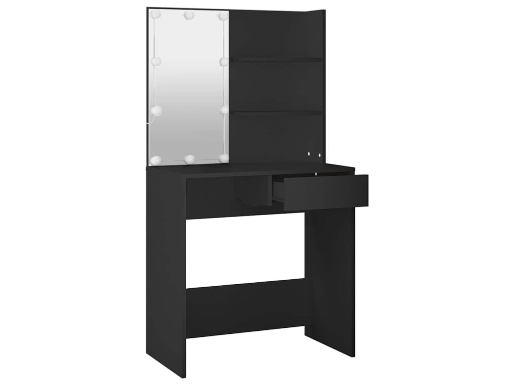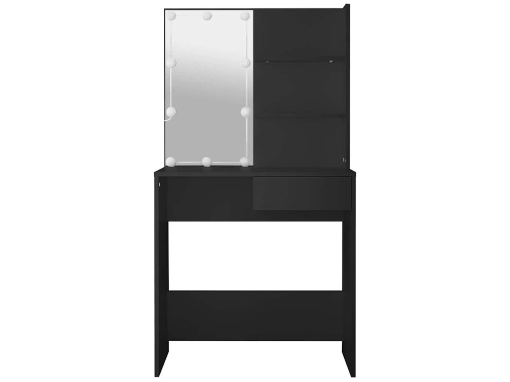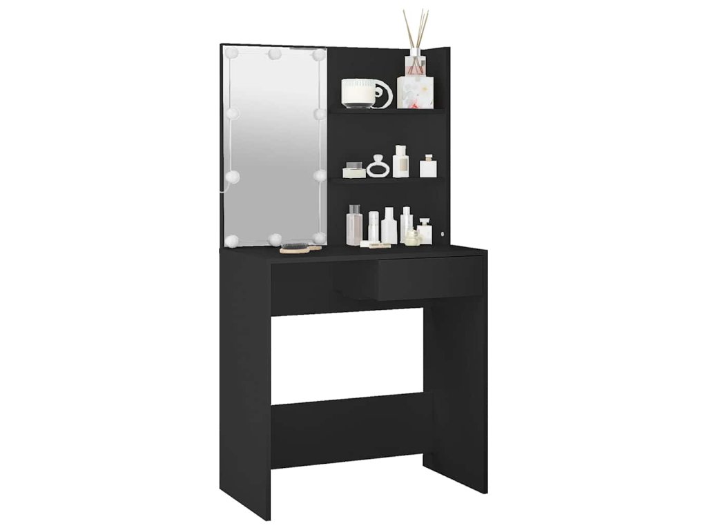 - Dostatek úložného prostoru: Stolek na make-up je dodáván s úložnou zásuvkou pro uložení příslušenství a dvěma otevřenými policemi na stole pro uložení různých druhů lahviček.