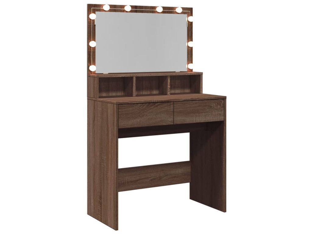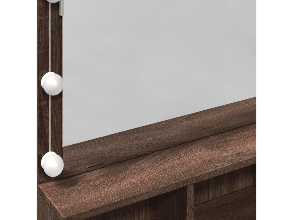 - LED světlo: Kosmetický stolek má LED žárovky s USB, u kterých lze snadno přepínat režimy z teplé do studené bílé. Integrované LED žárovky kolem zrcadla zvýrazní i vaši krásu.