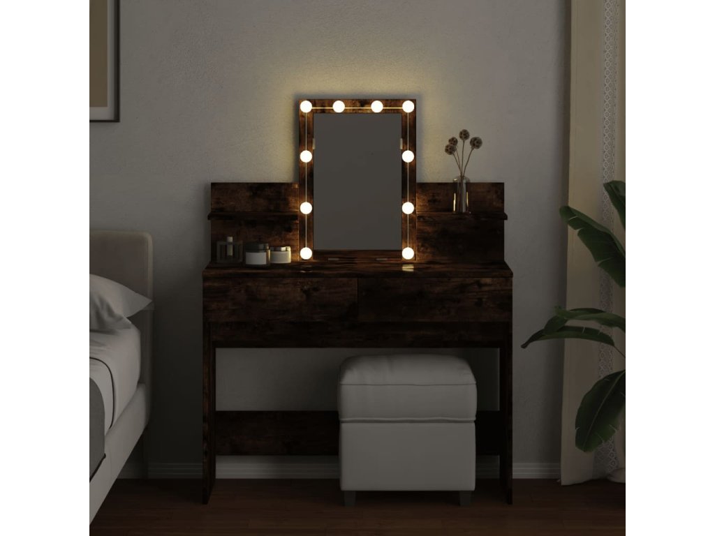 - LED světlo: Kosmetický stolek má LED žárovky s USB, u kterých lze snadno přepínat režimy z teplé do studené bílé. Integrované LED žárovky kolem zrcadla zvýrazní i vaši krásu.