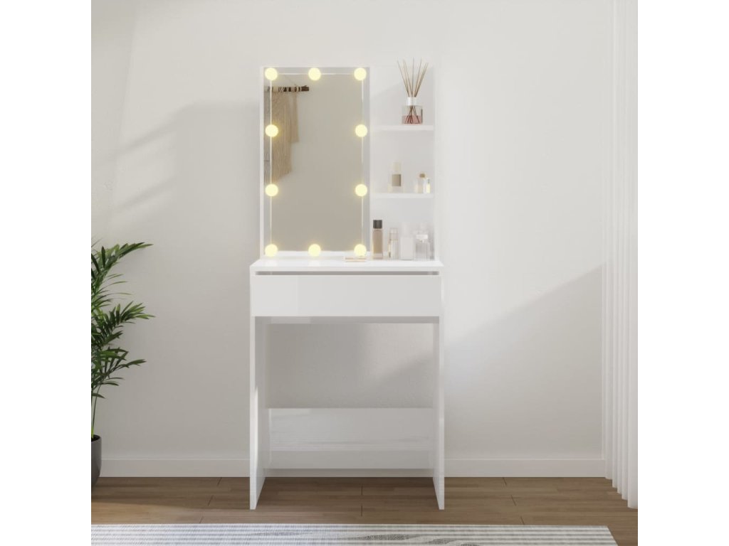 - LED světla: Kosmetický stolek má LED žárovky s USB, u kterých lze snadno přepínat režimy z teplé do studené bílé. Integrované LED žárovky kolem zrcadla zvýrazní i vaši krásu.