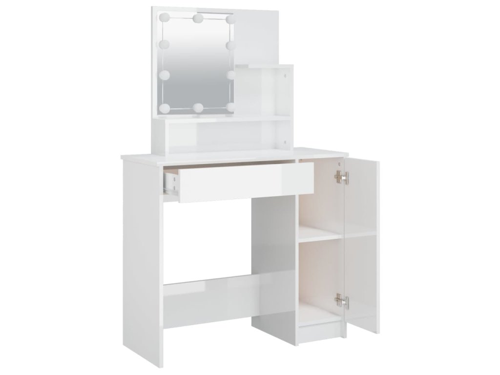 - LED světla: Kosmetický stolek má LED žárovky s USB, u kterých lze snadno přepínat režimy z teplé do studené bílé. Integrované LED žárovky kolem zrcadla zvýrazní i vaši krásu.