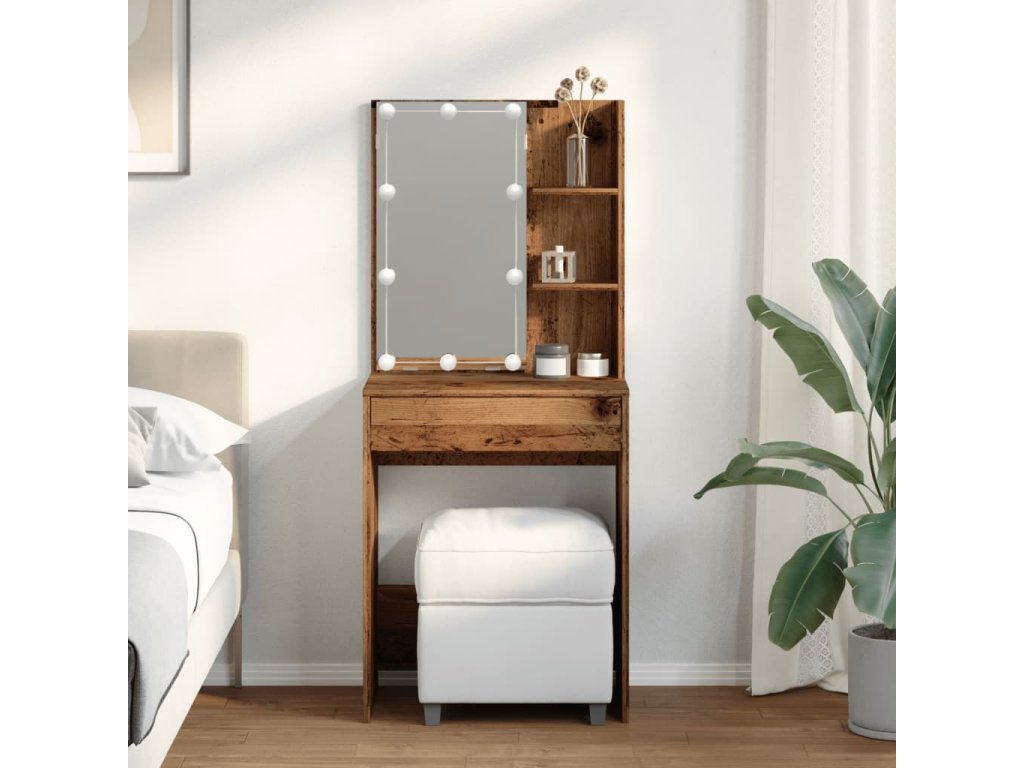 - Dostatek úložného prostoru: Prostorná zásuvka a dvě otevřené police na tomto kosmetickém stolku poskytují dostatek úložného prostoru pro uspořádání vašich věcí.