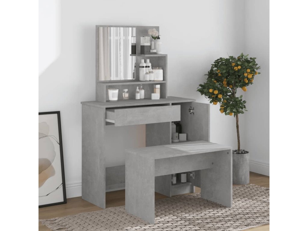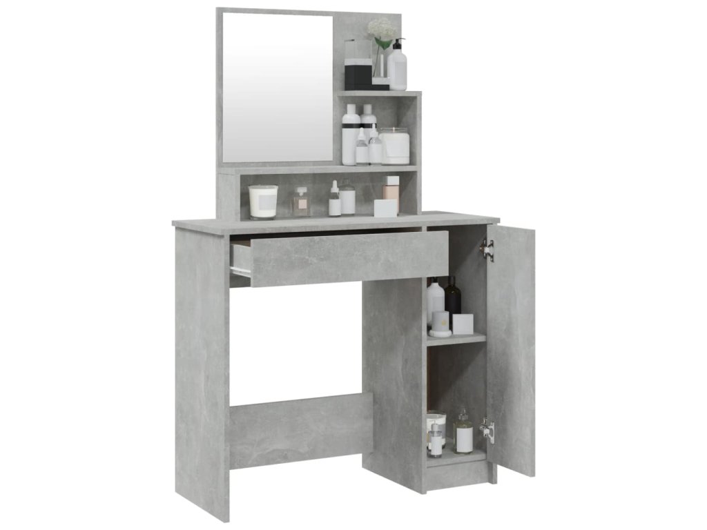- Dostatek úložného prostoru: Zásuvka, přihrádky a otevřené police kosmetického stolku nabízejí místo pro kosmetické předměty a udržují vše na svém místě.