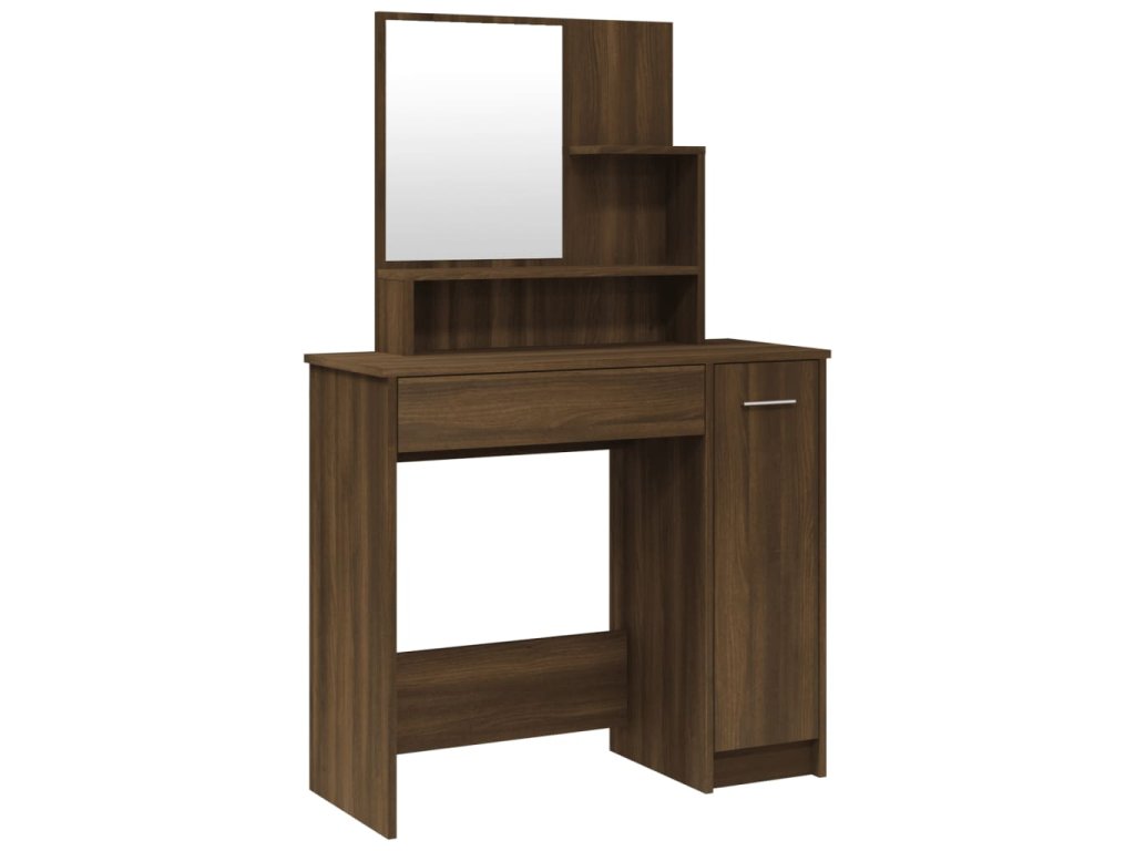 - Prémiový materiál: Kompozitní dřevo je mimořádně kvalitní, má hladký povrch a vyznačuje se pevností, stabilitou a odolností proti vlhkosti. Kosmetický stolek je zhotovený z kompozitního dřeva, což usnadňuje jeho čištění.