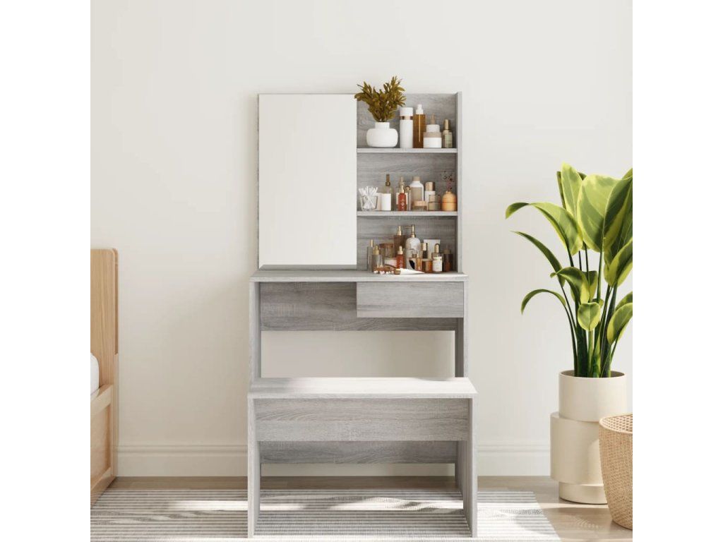 - Dostatek úložného prostoru: Stolní deska, police ve dvou patrech na stole a jedna zásuvka pod stolem poskytují dostatek prostoru pro snadný přístup k vašemu make-upu, šperkům a každodenním nezbytnostem.