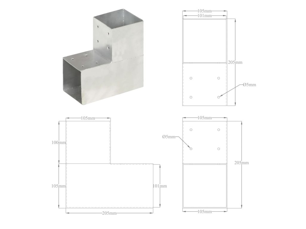Elektrogalvanizovaná spojka umožňuje snadné připojení a spojení trámů nebo nosníků. Všechny spojky jsou předvrtané. Tato trámová spojka je určená pro 2 čtvercové dřevěné trámy s hranou o délce 101 mm.