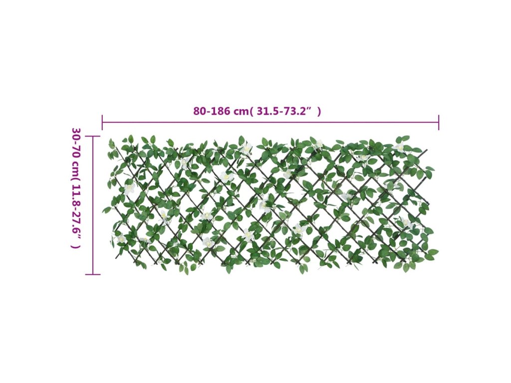 - Roztahovací: Roztahovací plot umožňuje nastavit šířku od 80 cm do 186 cm a výšku od 30 cm do 70 cm. Můžete si treláž přizpůsobit podle svých potřeb.