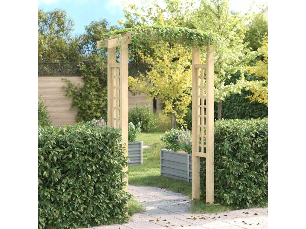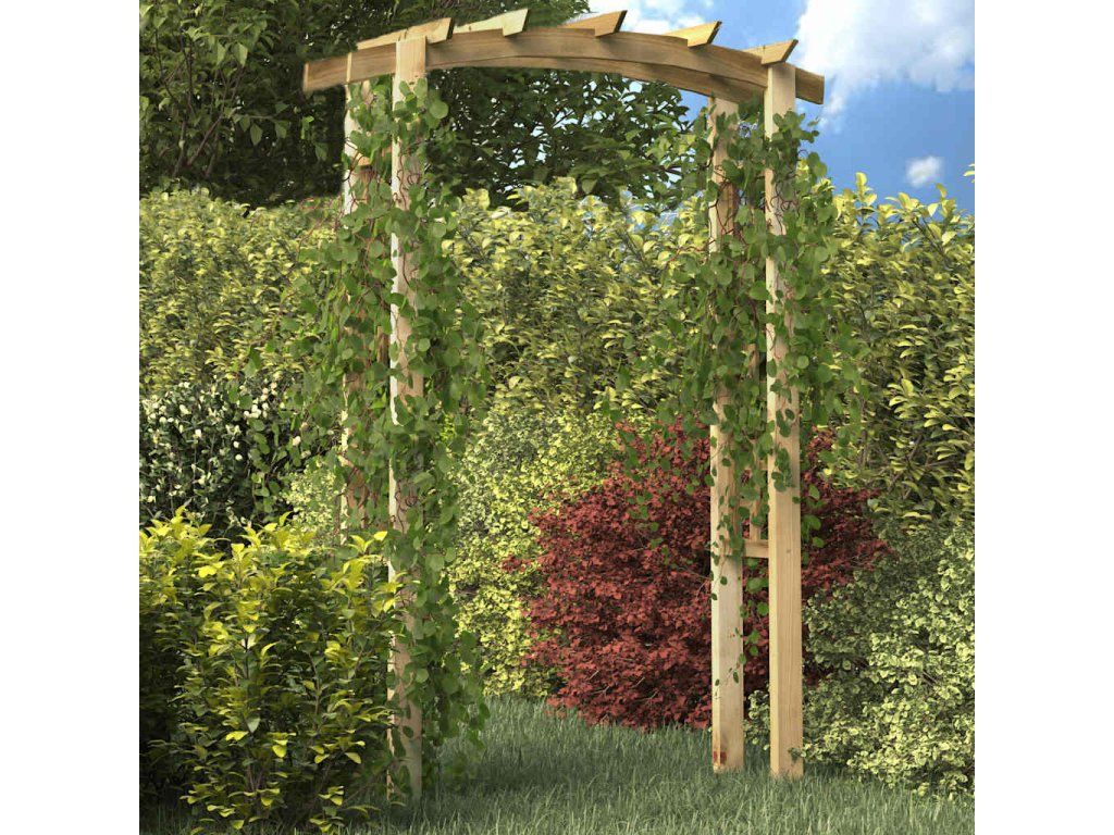 Pokud pěstujete růže či jiné popínavé rostliny, pak pro ně určitě hledáte stabilní oporu. Tento zahradní oblouk, jakmile celý obroste voňavými květinami, vytvoří krásné stinné posezení. Může ale také být velmi působivou vstupní bránou na váš pozemek. Tento růžový oblouk je vyrobený ze zeleně impregnovaného borového dřeva, které je pevné, odolné vůči hnilobě a má dlouhou životnost.