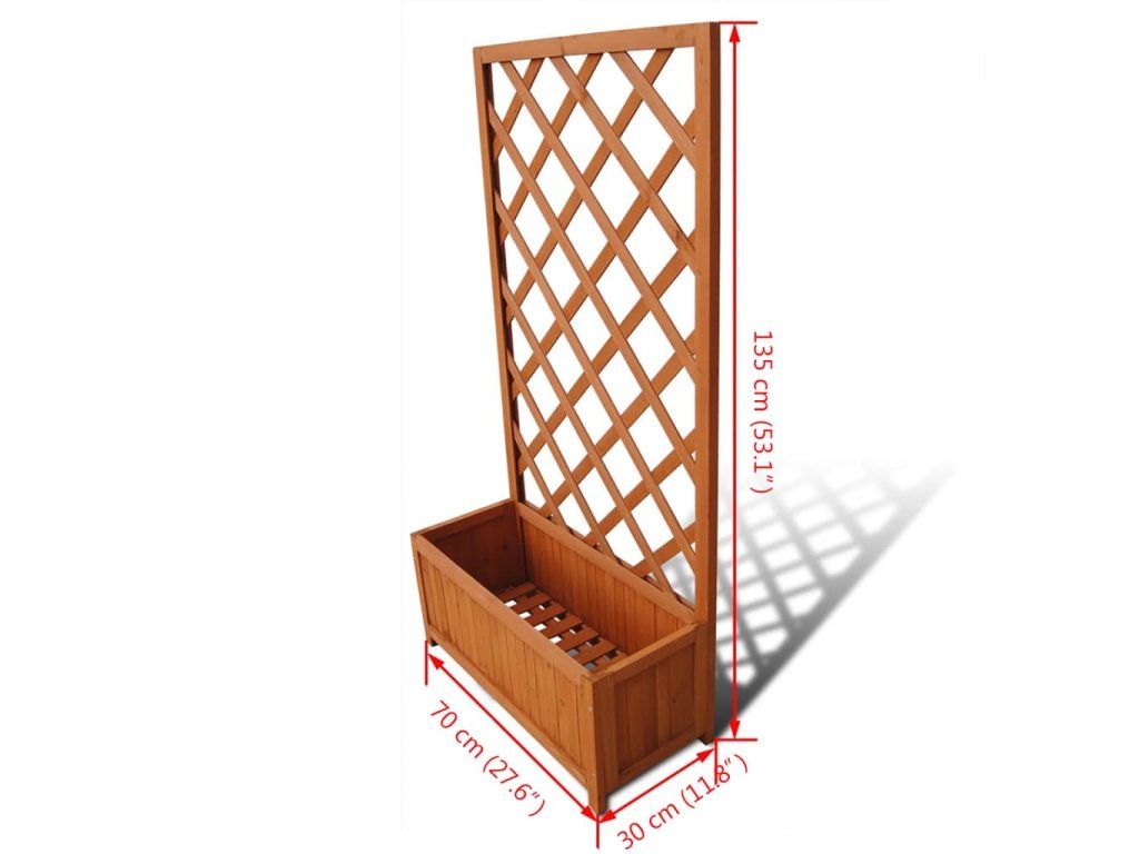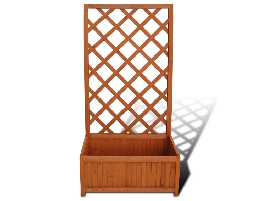 Tento trelážový truhlík z masivního a klimaticky odolného dřeva je vhodný pro celoroční instalaci venku. Sestavení je velmi snadné.