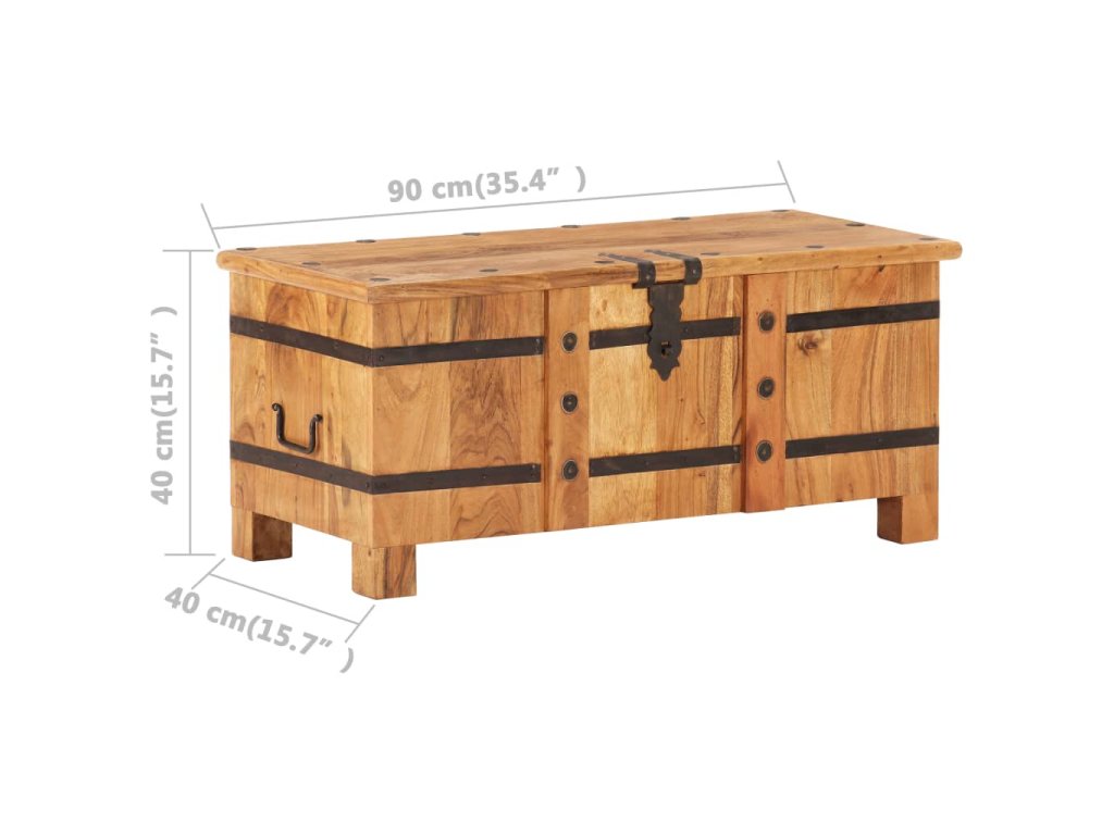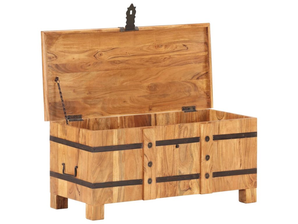 Tato truhla je vyrobená z masivní akácie, tropického tvrdého dřeva, které je stabilní a má dlouhou životnost. Má západku na přední straně a dvě rukojeti pro snadné zvednutí truhly. Tento úložný box se stabilní horní deskou lze také použít jako lavici do předsíně. Řemeslné zpracování a krásná dřevěná kresba dává každému kusu nábytku jedinečný a od všech ostatních mírně odlišný charakter.