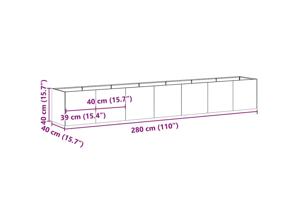 - Celkové rozměry: 280 x 40 x 40 cm (Š x H x V)
