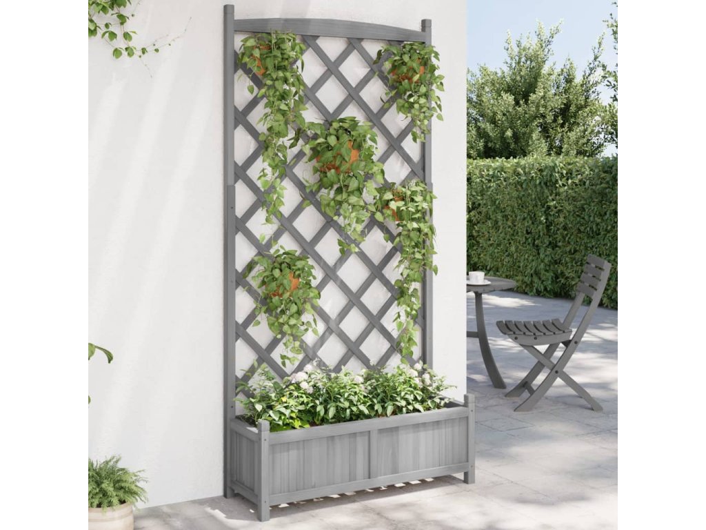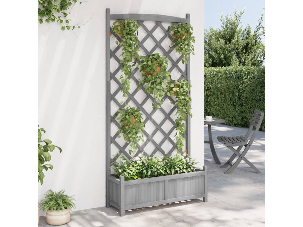 Tento dřevěný truhlík s treláží představuje skvělé řešení pro pěstování popínavých rostlin na zahradě, verandě nebo terase.