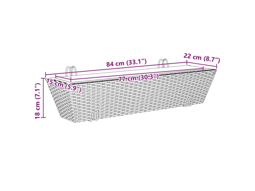 - Rozměry plastového květináče: 77 x 15 x 16,5 cm (Š x H x V)
