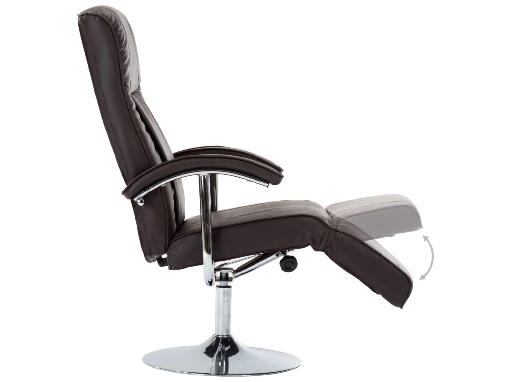 TV křeslo z umělé kůže v sobě úspěšně kombinuje styl a funkčnost. Jedná se o polohovatelné křeslo se silným chromovaným kovovým rámem. Pro maximální komfort je polstrované pěnou o vysoké hustotě a čalouněné kvalitní umělou kůží. Silný sedák a měkké opěradlo jsou velmi pohodlné.