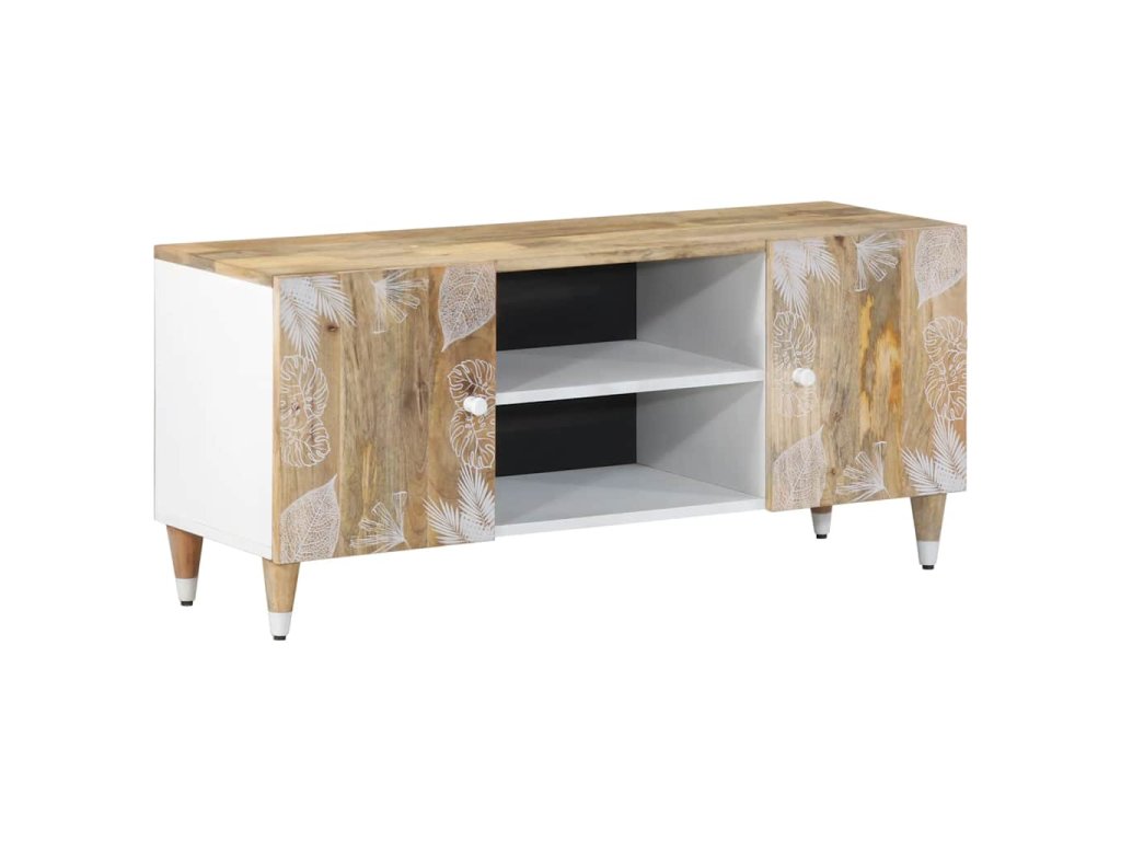 - Materiál: Přírodní mango s bílým lakem, kompozitní dřevo, kov