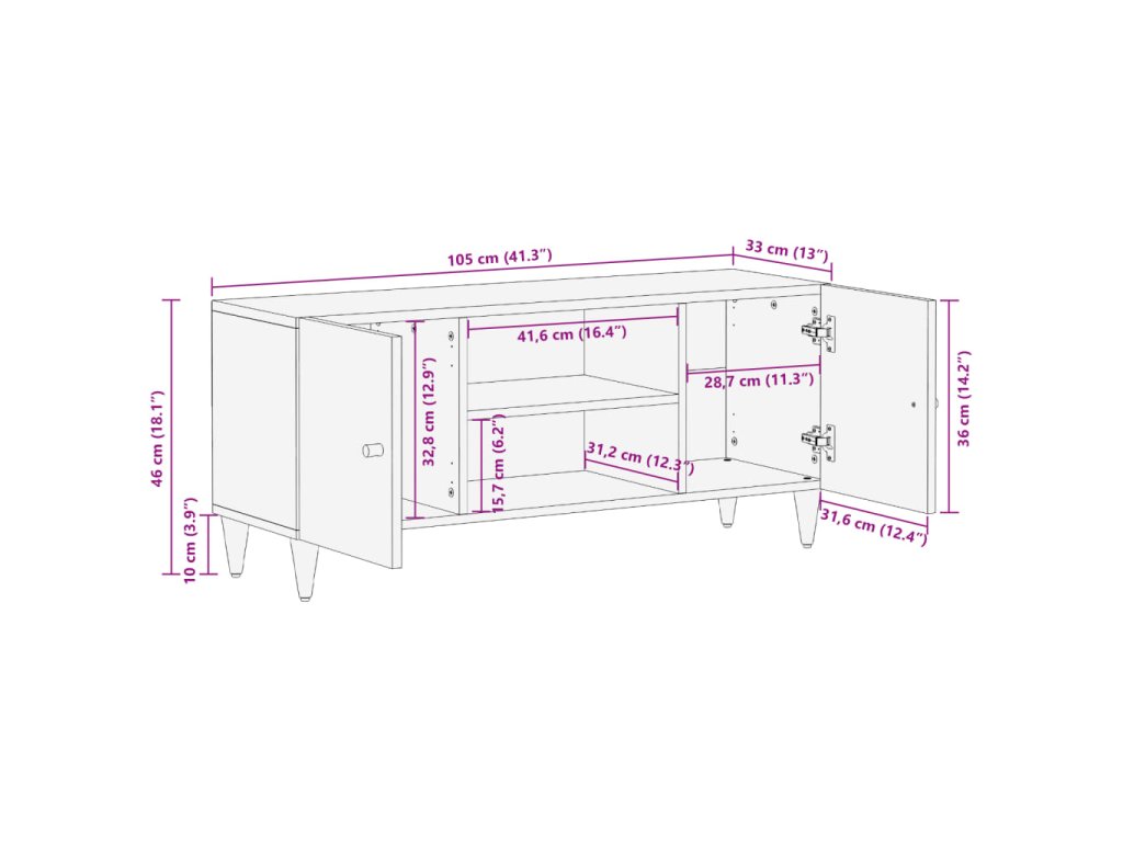 - Rozměry: 105 x 33 x 46 cm (Š x H x V)