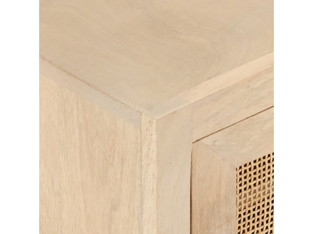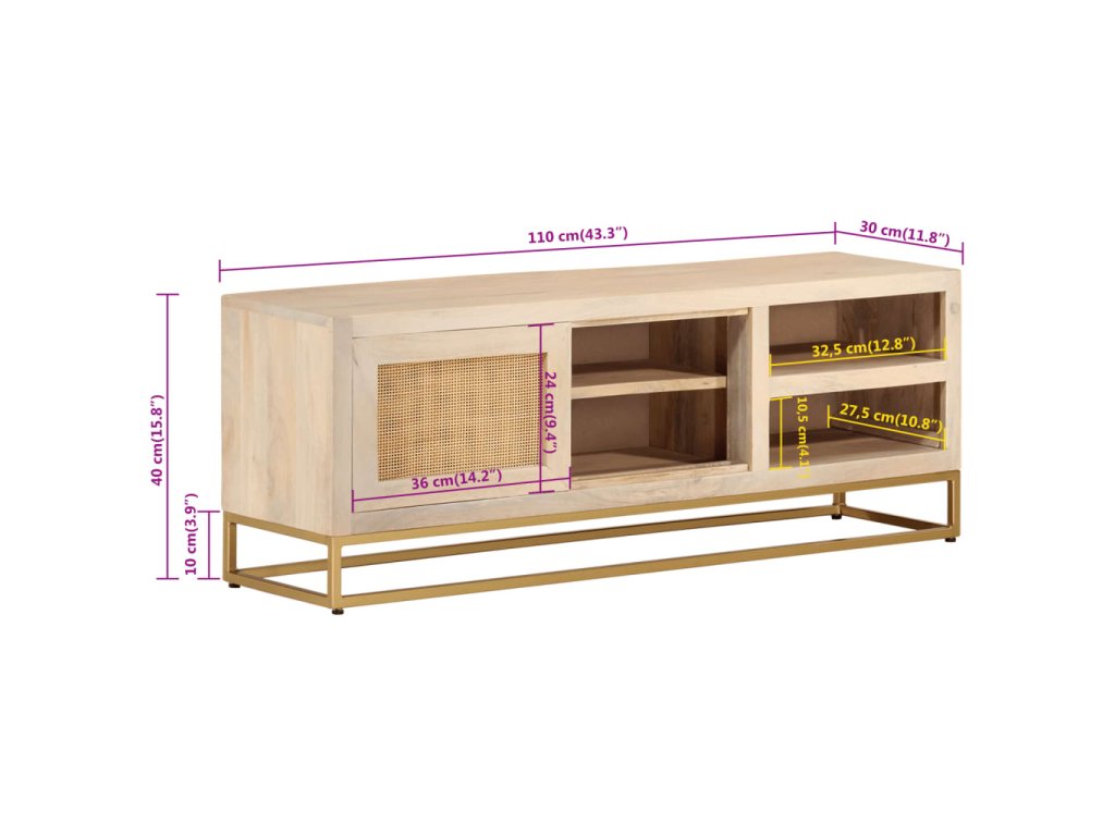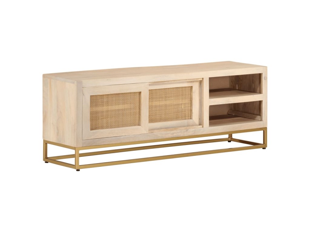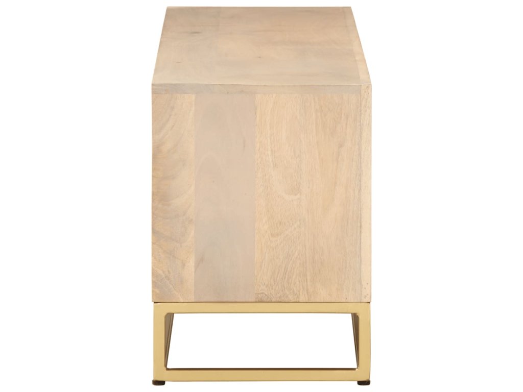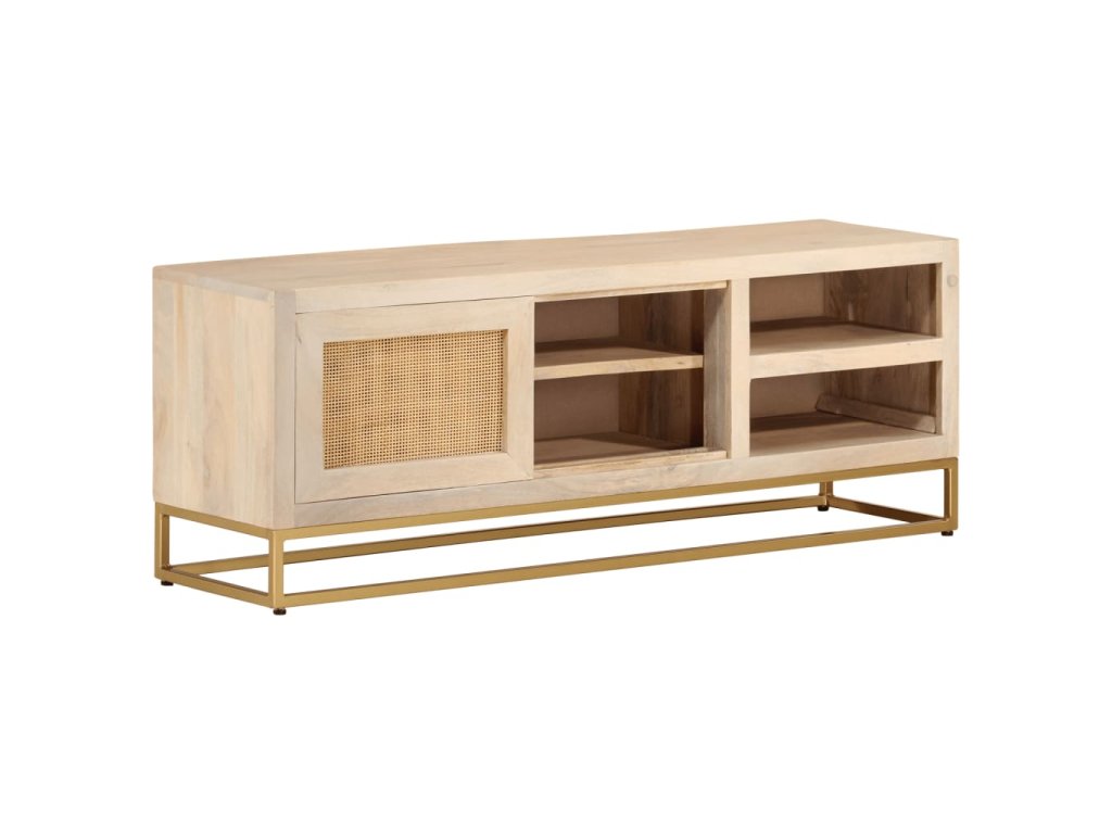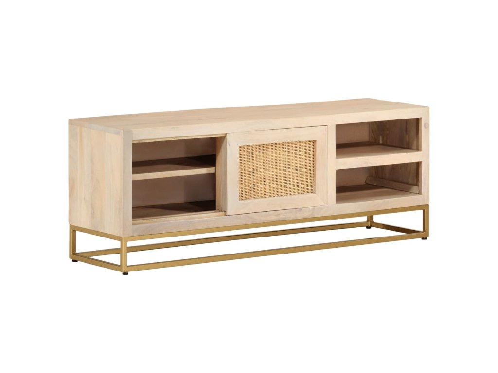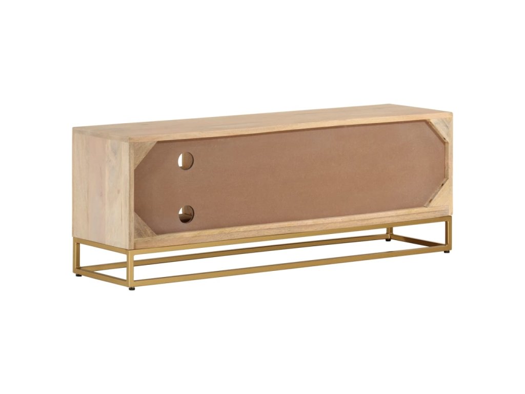 - Masivní mangovníkové dřevo: Masivní mangovníkové dřevo je pevné tropické tvrdé dřevo, ze kterého se vyrábí robustní nábytek. Krásná kresba dřeva propůjčuje každému kusu nábytku jeho jedinečný a od všech ostatních lehce odlišný vzhled. Televizní stolek je vyrobený z masivního mangovníkového dřeva, je tedy stabilní a odolný.