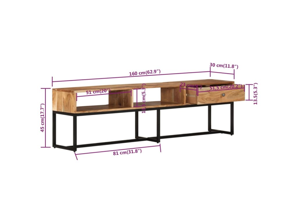 Se svým moderním a praktickým designem se tato TV skříňka z masivního dřeva stane ústředním bodem vašeho pokoje.