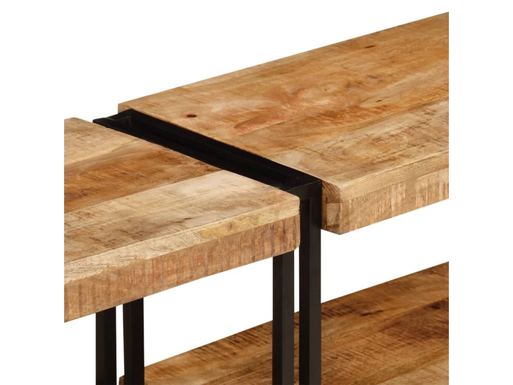 - Masivní mangovníkové dřevo: Masivní mangovníkové dřevo je pevné tropické tvrdé dřevo, ze kterého se vyrábí robustní nábytek. Krásná kresba dřeva propůjčuje každému kusu nábytku jeho jedinečný a od všech ostatních lehce odlišný vzhled.