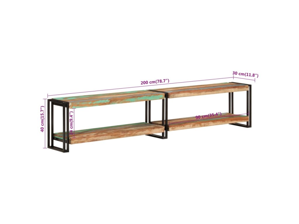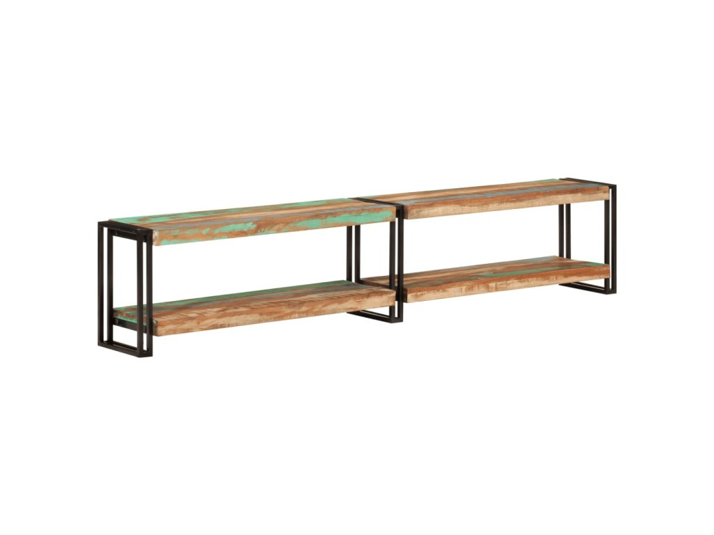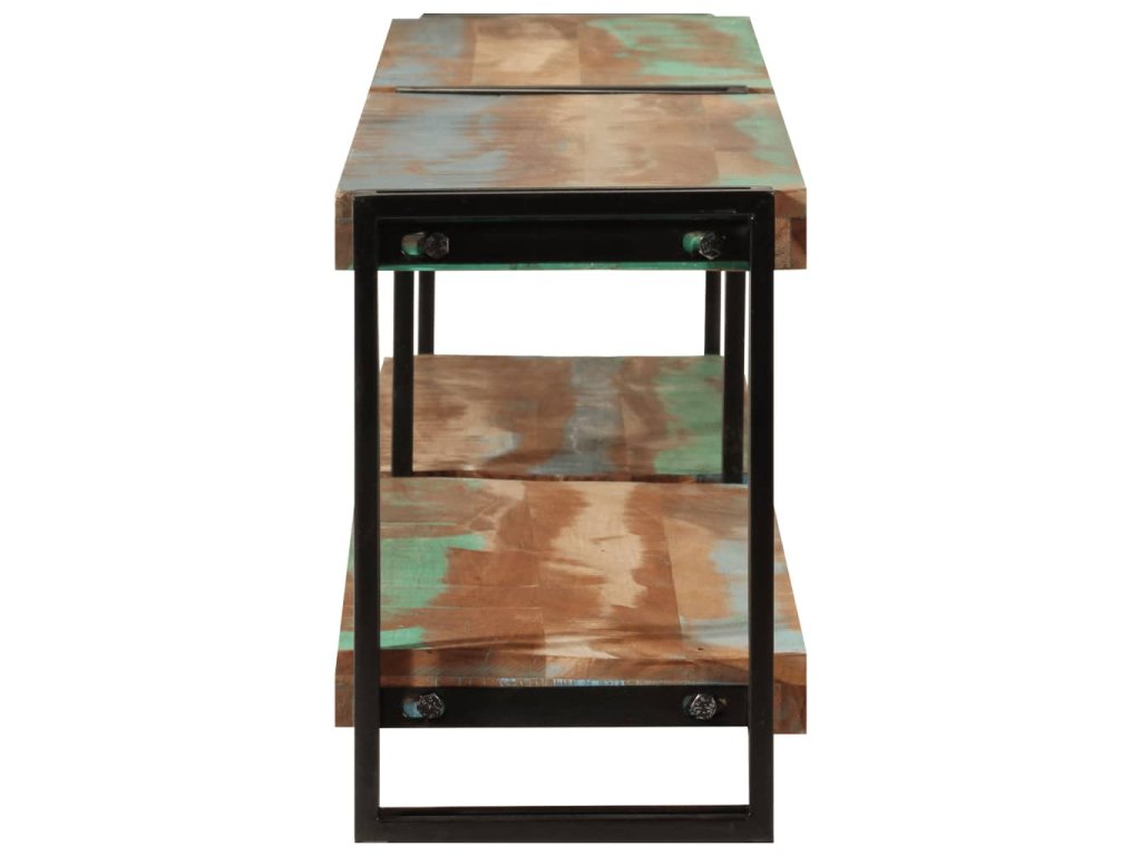 - Masivní recyklované dřevo: Masivní recyklované dřevo se skládá z opakovaně použitých dřevin, jako je teak, mangovník, borovice a buk. Toto dřevo pochází ze starých staveb, jako jsou továrny, kůlny a lodě. Jelikož je každý kus ručně vyrobený, odstíny se mohou u každého z nich lišit.