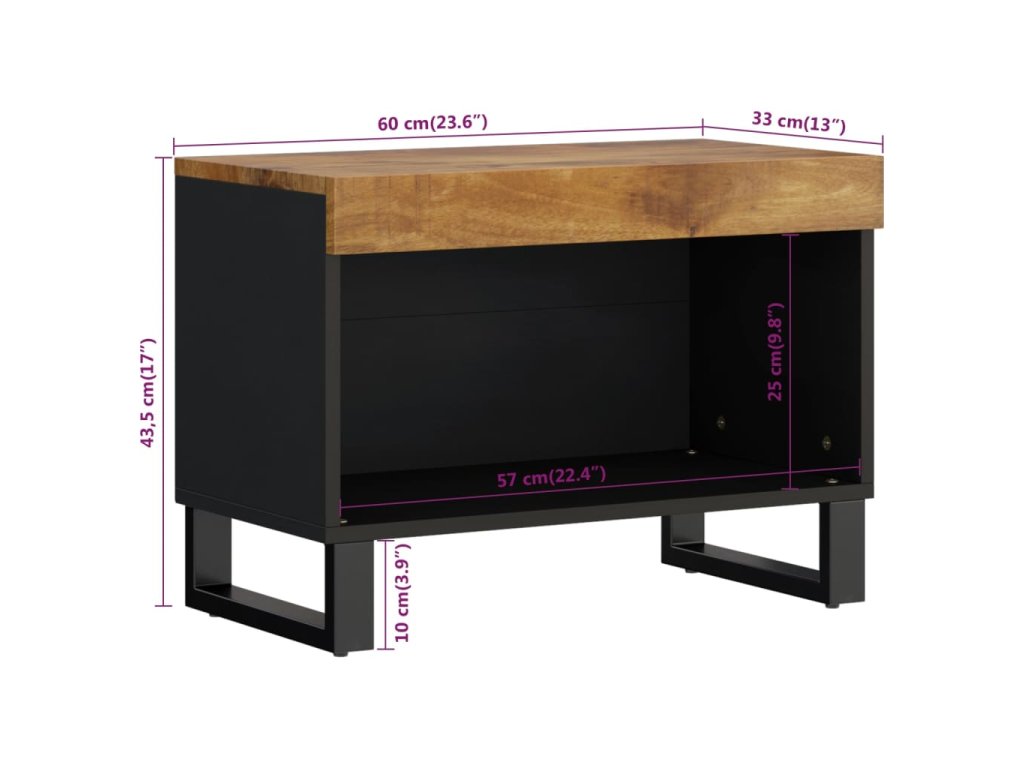- Materiál: masivní mangovníkové dřevo s medově hnědou povrchovou úpravou, železo