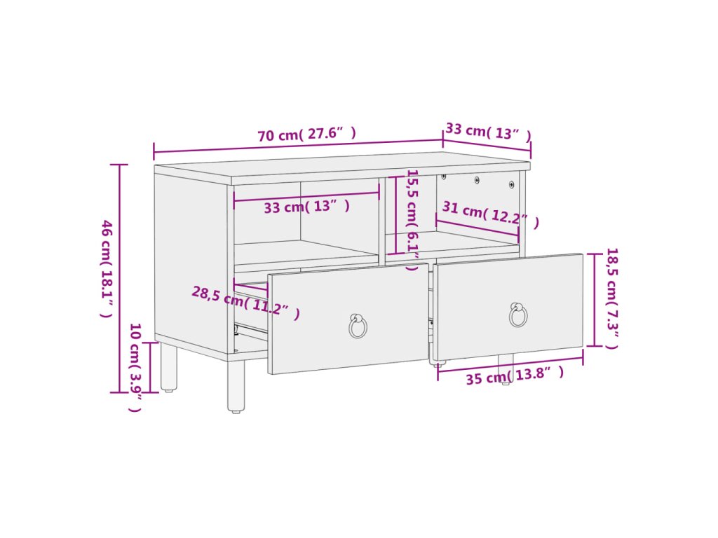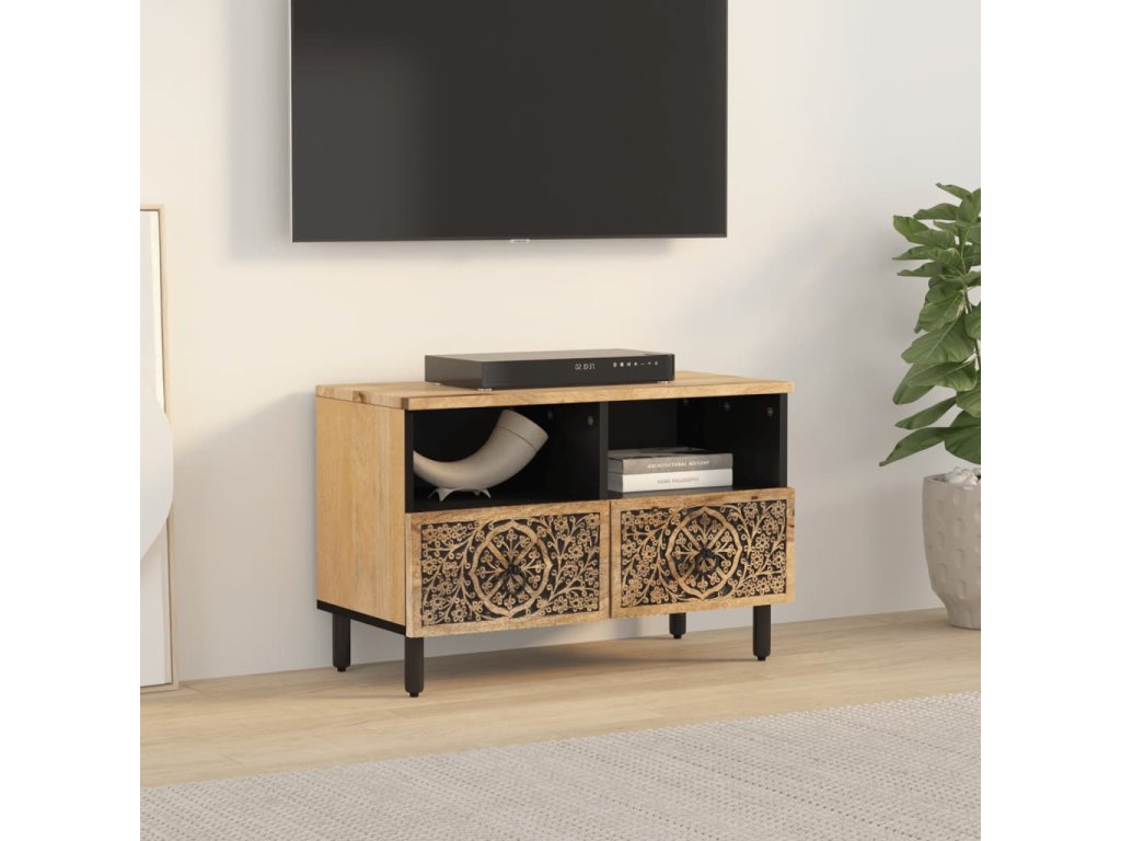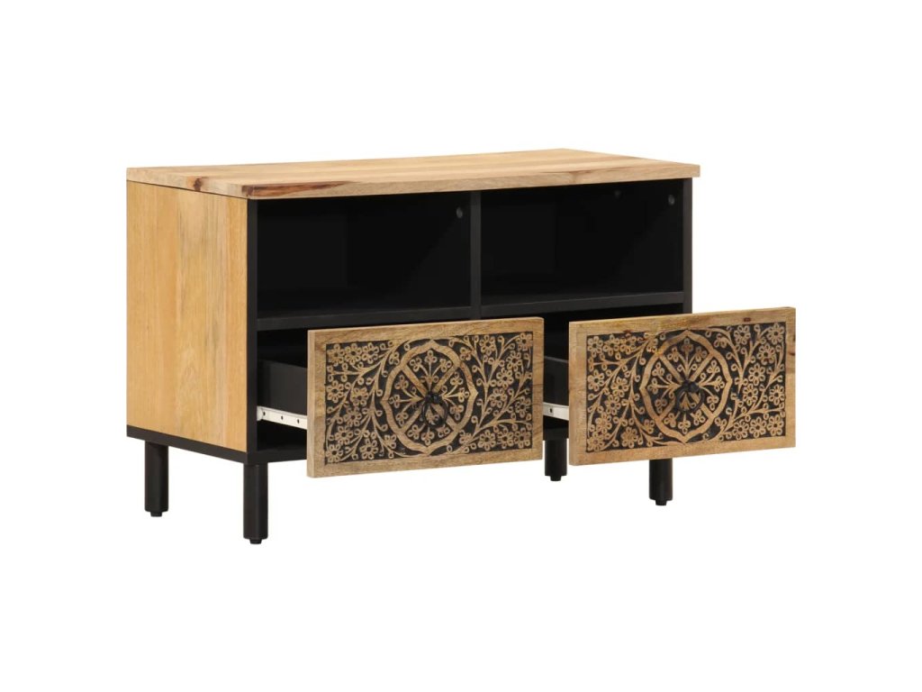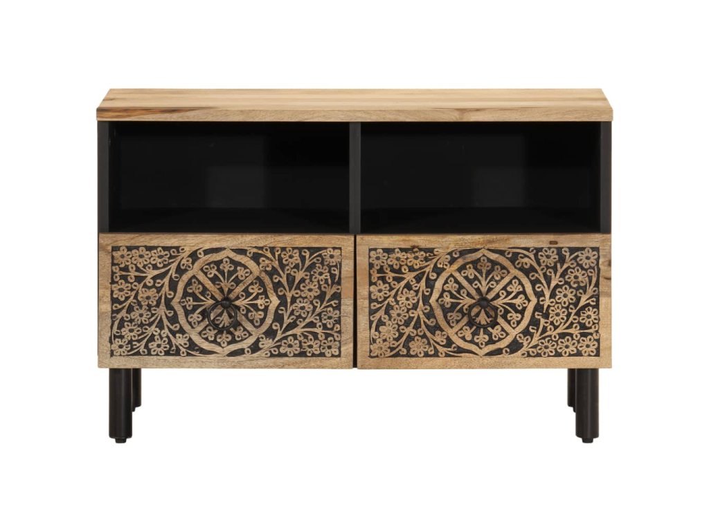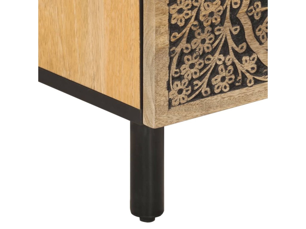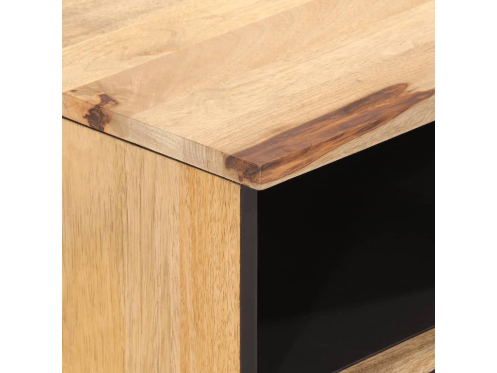 - Masivní mangovníkové dřevo: Masivní mangovníkové dřevo je pevné tropické tvrdé dřevo, ze kterého se vyrábí robustní nábytek. Krásná kresba dřeva propůjčuje každému kusu nábytku jeho jedinečný a od všech ostatních lehce odlišný vzhled. Televizní stolek je vyrobený z masivního mangovníkového dřeva, je tedy stabilní a odolný.