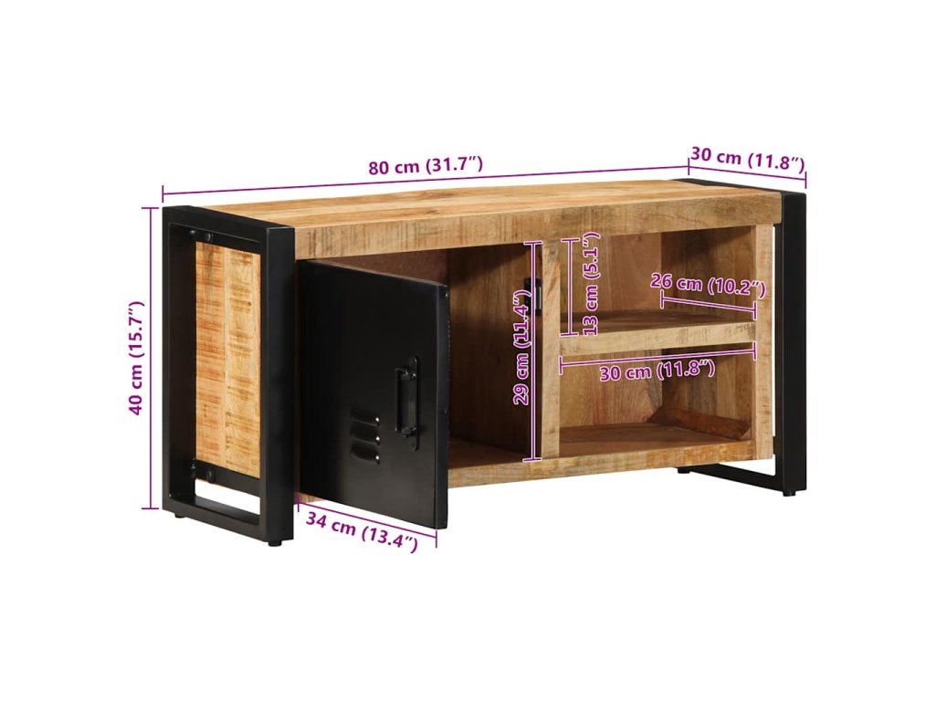 - Materiál: masivní hrubé mangovníkové dřevo, železo