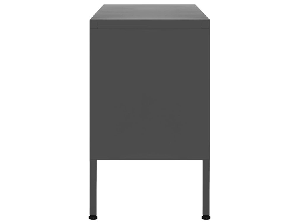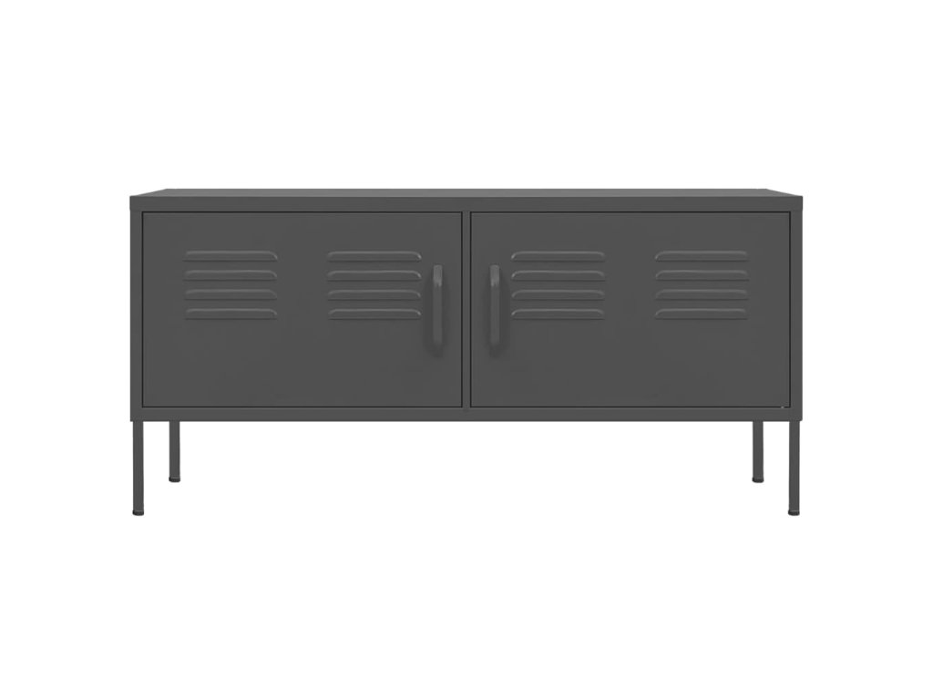 Ocelová konstrukce této TV skříňky zaručuje vysokou odolnost a dlouhou životnost. Ve spodní části se nachází nivelační nohy, které umožňují nastavit výšku podle vašich potřeb. TV stolek má 2 dvířka a uvnitř 1 polici, poskytne vám tedy spoustu místa k uložení vašich DVD, časopisů a dalších nezbytností. V zadní stěně navíc najdete 4 otvory na protažení kabelů od mediálních a elektronických zařízení.