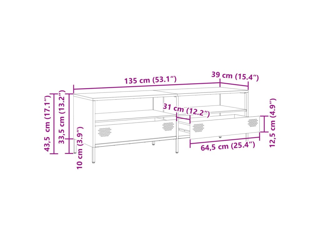 Tato bytelná TV skříňka v industriálním stylu se stane nadčasovým doplňkem vašeho obývacího pokoje nebo ložnice.