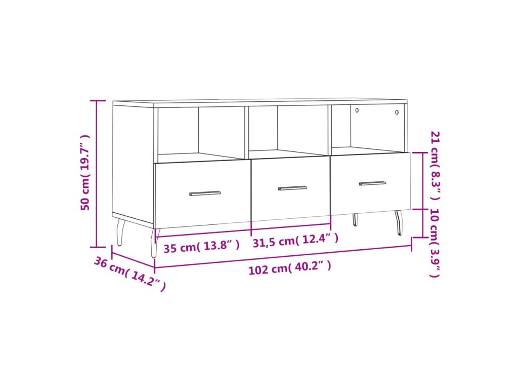 - Spousta úložného prostoru: TV stolek je vybaven 3 přihrádkami a 3 zásuvkami, takže představuje ideální místo k uložení vašich časopisů, DVD nebo jiných věcí.