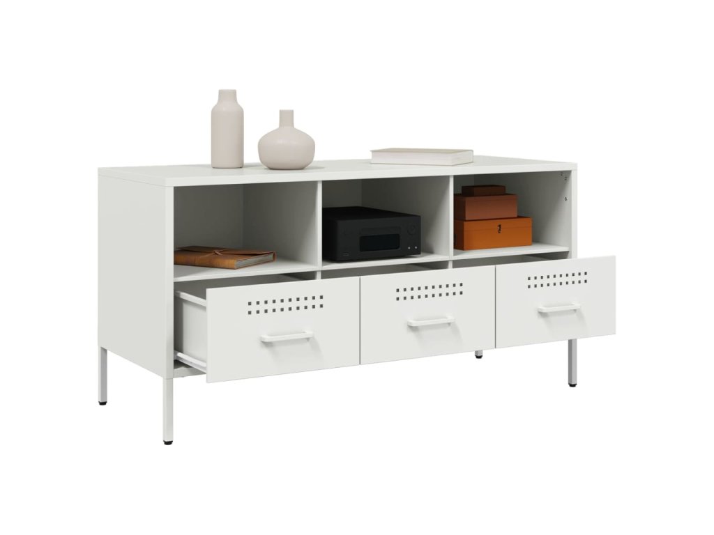 - Stabilní materiál: Rám TV skříňky je vyroben z oceli válcované za studena. Ocel válcovaná za studena je druh nízkouhlíkové oceli vyráběné metodou válcování za studena a zpracovávané při teplotách blízkých běžným pokojovým teplotám. Ocel válcovaná za studena má hladší povrch, větší pevnost a vyšší přesnost.