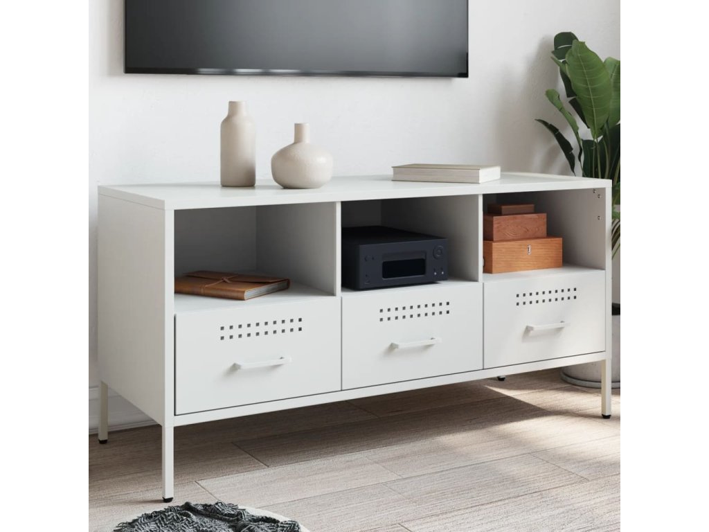 Tato bytelná TV skříňka v industriálním stylu se stane nadčasovým doplňkem vašeho obývacího pokoje nebo ložnice.