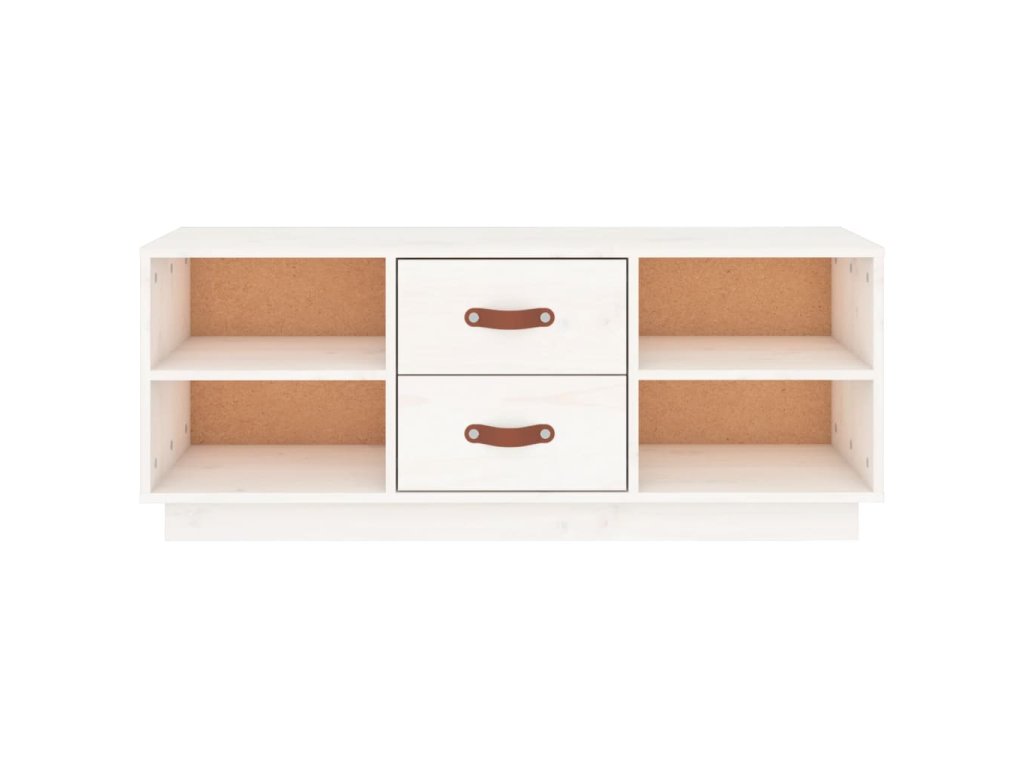 - Masivní borové dřevo: Masivní borové dřevo je krásný přírodní materiál. Borové dřevo má rovnou kresbu a obsahuje suky, které materiálu dodávají jeho charakteristický, rustikální vzhled. Tento TV stolek je vyroben z masivního dřeva, takže je výjimečně stabilní.