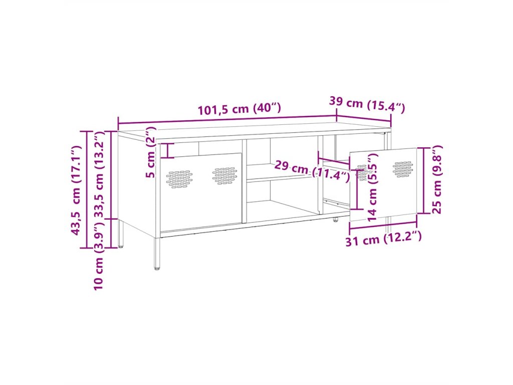 Tato bytelná TV skříňka v industriálním stylu se stane nadčasovým doplňkem vašeho obývacího pokoje nebo ložnice.