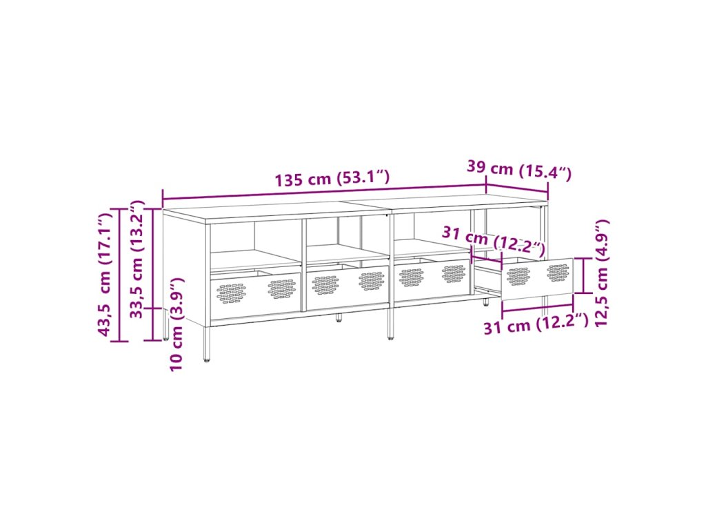Tato bytelná TV skříňka v industriálním stylu se stane nadčasovým doplňkem vašeho obývacího pokoje nebo ložnice.