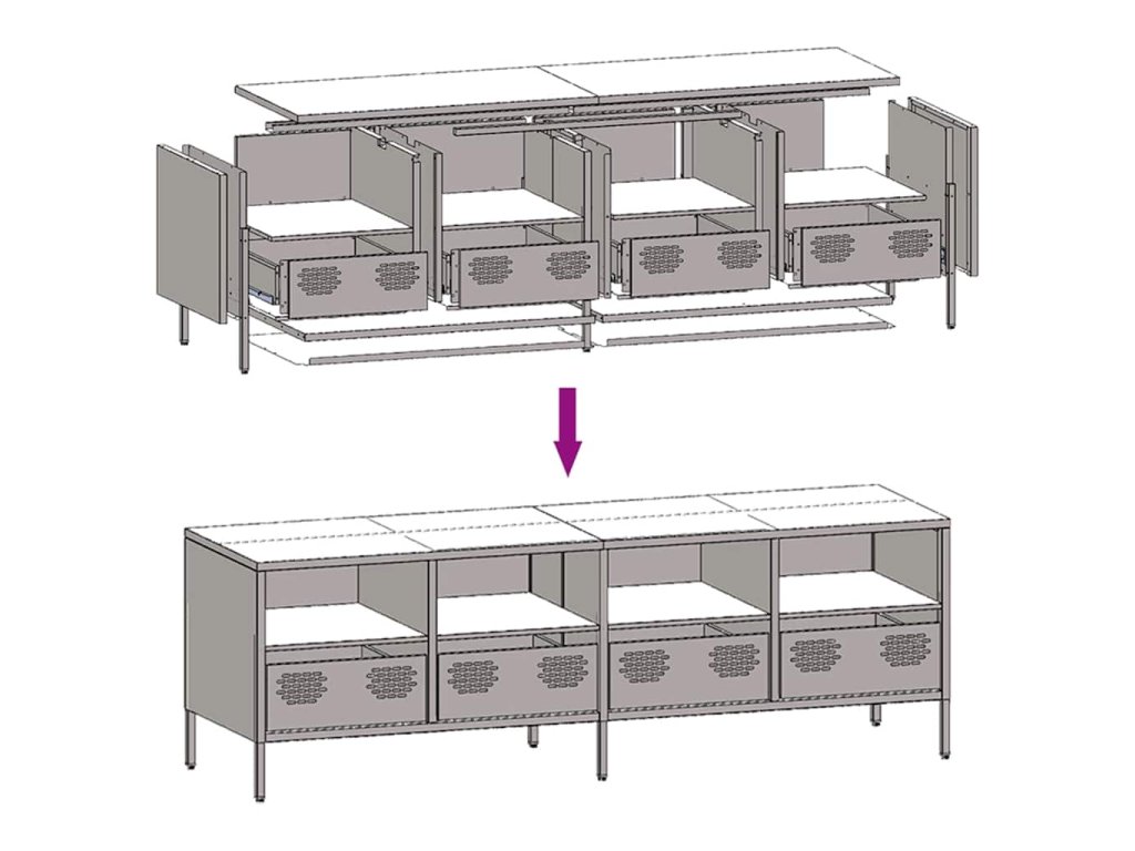 - Stabilní materiál: Rám TV skříňky je vyroben z oceli válcované za studena. Ocel válcovaná za studena je druh nízkouhlíkové oceli vyráběné metodou válcování za studena a zpracovávané při teplotách blízkých běžným pokojovým teplotám. Ocel válcovaná za studena má hladší povrch, větší pevnost a vyšší přesnost.