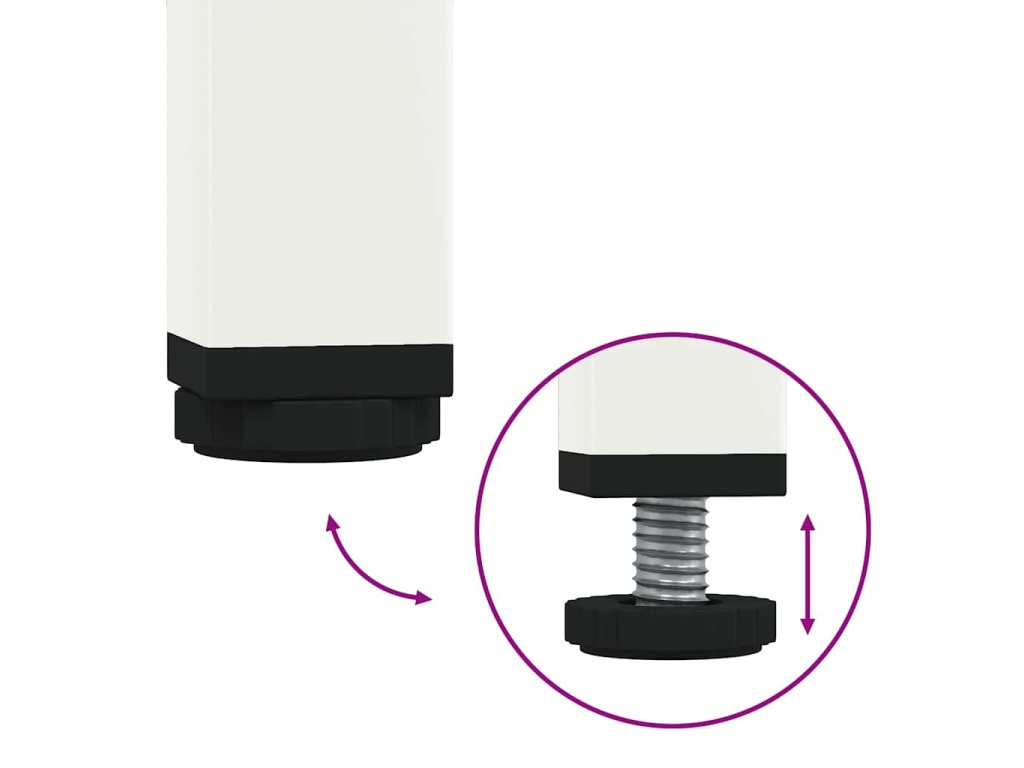- Nastavitelné šroubovací nožičky: Tato TV skříňka je vybavena čtyřmi nastavitelnými šroubovými nožičkami, které vyrovnávají nerovnosti podlahy a zajišťují stabilitu a rovnováhu.
