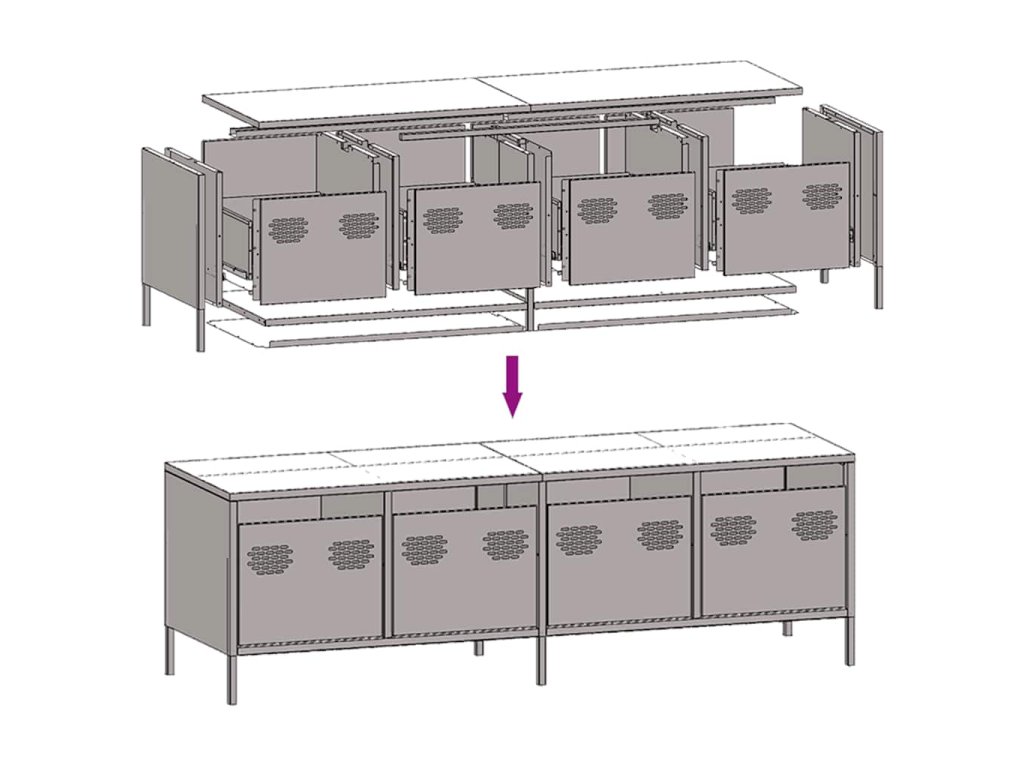 - Snadno se čistí: Kovová skříňka se snadno čistí vlhkým hadříkem a vyžaduje minimum údržby.