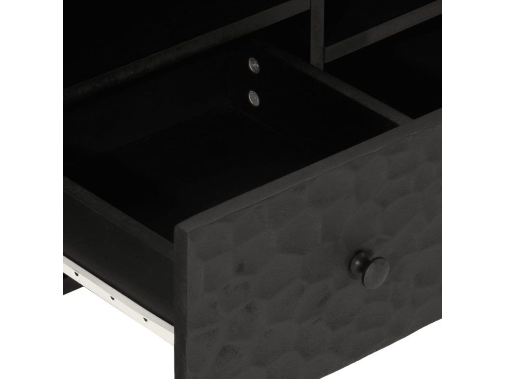 - Materiál: masivní mangovníkové dřevo černě mořené, kompozitní dřevo, železo